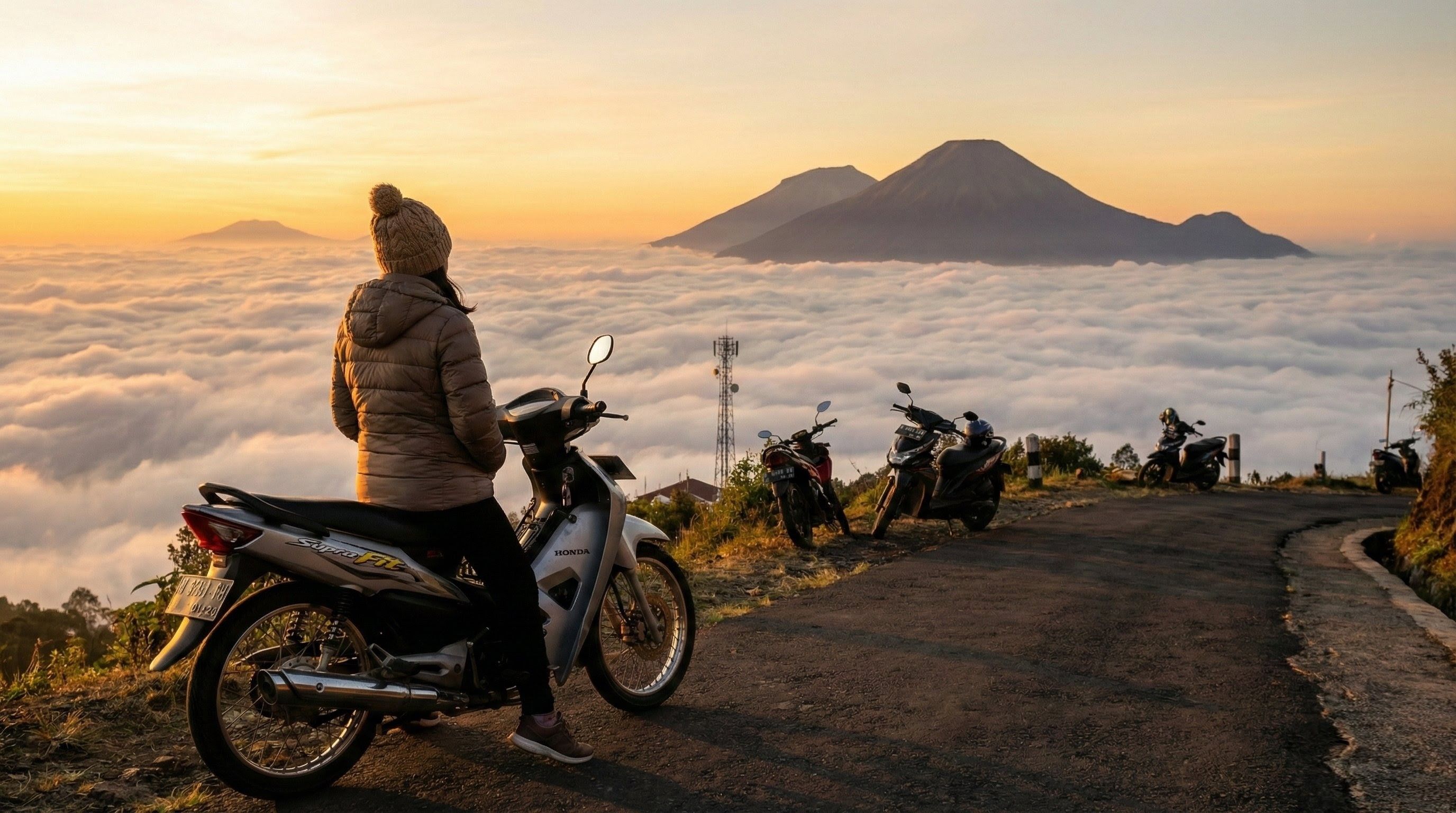 Kenapa aku bilang ajaib? Karena ini adalah satu-satunya gunung di Indonesia yang puncaknya bisa kamu capai cuma dengan gas motor. Literally, kamu bisa parkir motor tepat di sebelah awan. Gak perlu carrier segede gaban, gak perlu sepatu trekking mahal, cukup modal jaket tebal dan motor yang sehat.