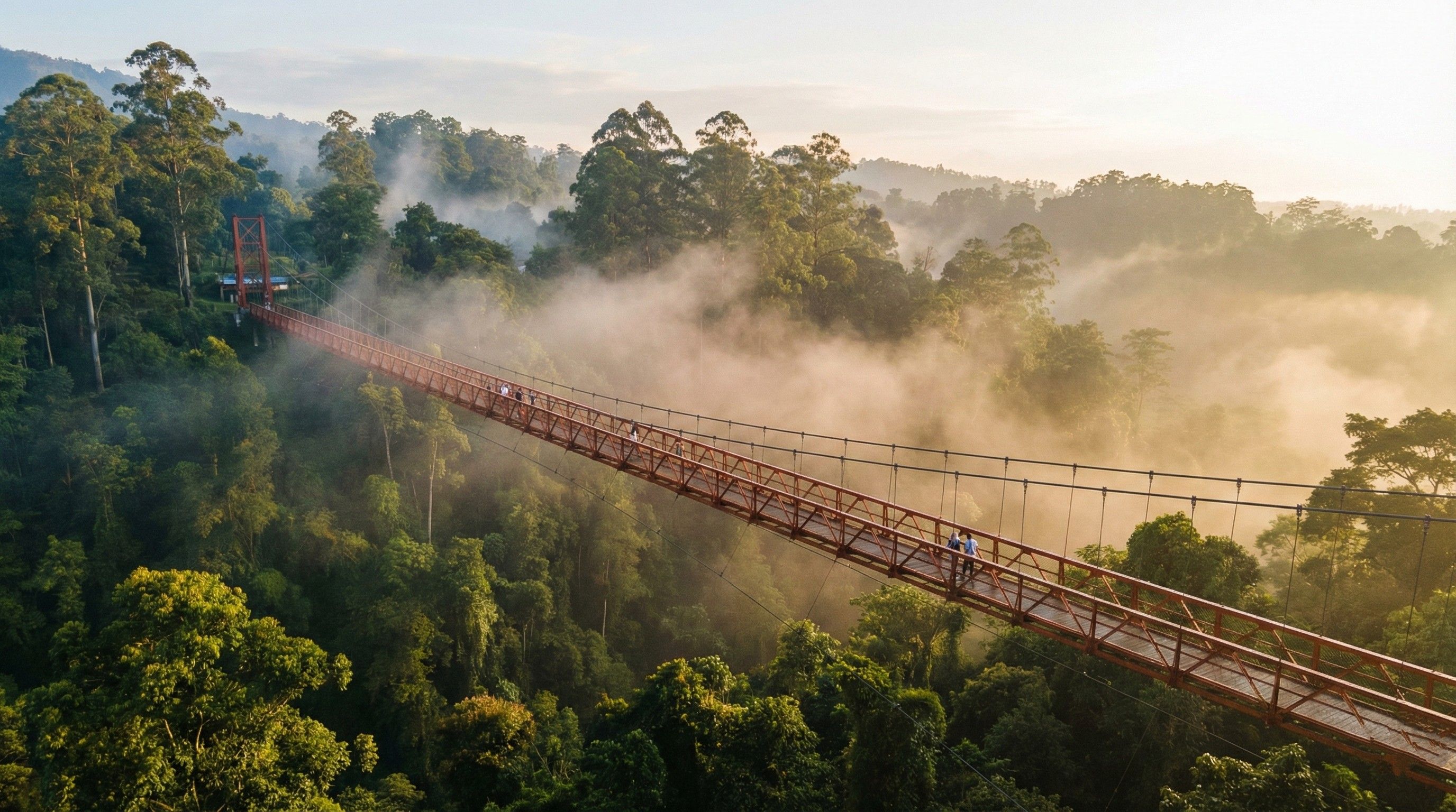 Mungkin kamu sudah sering lihat foto-foto jembatan merah ikonik ini seliweran di feed Instagram atau TikTok. Tapi percaya deh, melihatnya langsung jauh lebih magis. Bukan cuma soal pemandangan, tapi juga sensasi adrenalin saat kaki kita melangkah di atas jembatan gantung terpanjang di Asia Tenggara ini.
